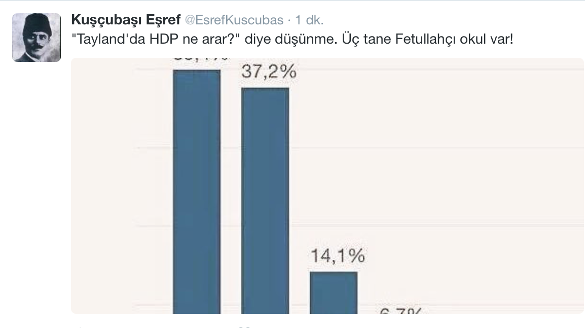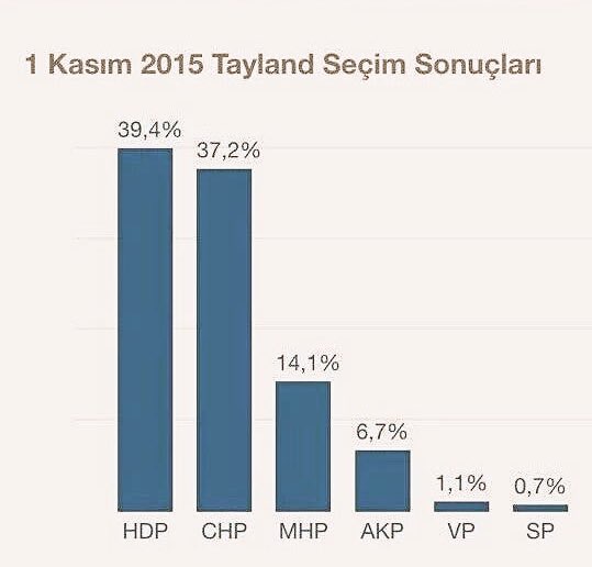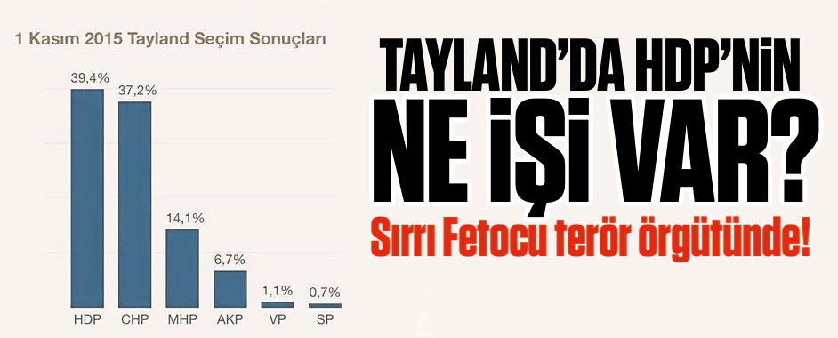 Fetocu terör örgütünün nasıl bir ihanet şebekesi olduğuna dair sayısız kanıttan biri daha… Taylan’dan seçim sonucunda HDP birinci parti çıktı. Peki HDP’nin Tayland’da ne işi var? HDP’nin yok ama Fetocu terör örgütünün 3 tane okulu var. Yani HDP’ye verilen oylar FETÖ’den… Tıpkı geçen seçimde Diyarbakır’da polis lojmanlarından en fazla HDP’ye oy çıkması gibi… HDP sempatizanlarının bulunmadığı Tayland’da, FETÖ’ye ait Elmas Koleji, Tayland Türk Okulları ve Fatih Koleji’ndeki görevlilerin HDP’ye oy verdiği öğrenildi. FETÖ’nün desteği neticesinde HDP’nin sandıktan birinci parti olarak çıktığı belirlendi. Yurt dışı oylarında AK Parti’nin yüzde 6,69 ile en düşük oy aldığı ülke olan Tayland’da HDP ise yüzde 39,41 aldı. Tayland’da 703 seçmenden yüzde 38,26 katılım oranıyla 269 geçerli oy çıktı. HDP, 106 oy ile birinci parti. CHP, 100 oy ile ikinci parti. MHP, 38 oy ile üçüncü parti. AK Parti, 18 oy ile dördüncü parti. Geriye kalan oylar ise diğer partilere gitti.