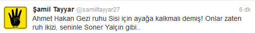 “Ahmet Hakan Gezi ruhu Sisi için ayağa kalkmalı demiş! Onlar zaten ruh ikizi, seninle Soner Yalçın gibi..”