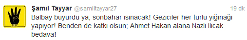 “Balbay buyurdu ya, sonbahar ısınacak! Geziciler her türlü yığınağı yapıyor! Benden de katkı olsun; Ahmet Hakan alana Nazlı Ilıcak bedava!”