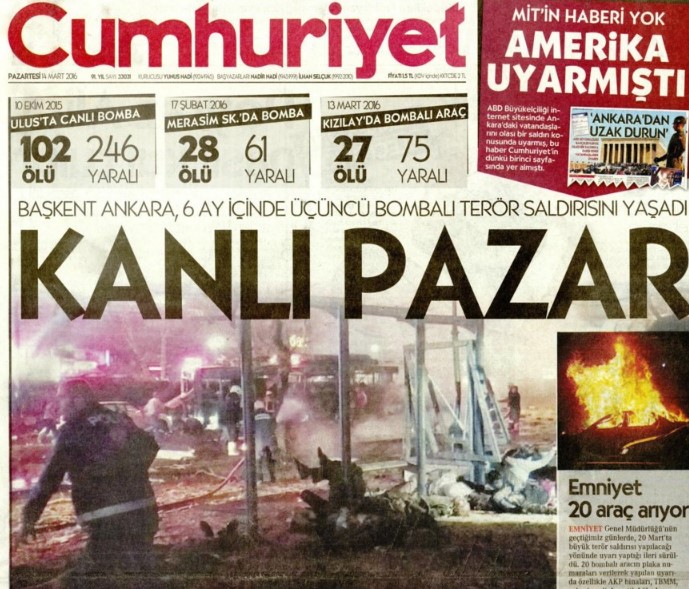 Cumhuriyet gazetesi, Türkiye’deki terör eylemlerinde yaptığının aksine Londra’daki saldırı fotoğraflarını buzladı.