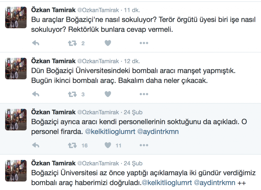 Diğer yandan dün Boğaziçi Üniversitesi Rektörlüğü’nden yapılan yazılı açıklamada “Güvenlik güçleri araçta bomba düzeneği tespit etti” denilmişti.
