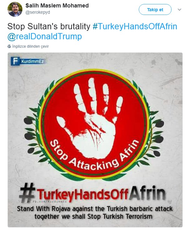 Terör örgütü PYD’nin elebaşı Salih Müslim, Türkiye’nin Afrin’e yönelik operasyonunu durdurması için ABD Başkanı Donald Trump’a yalvardı.
