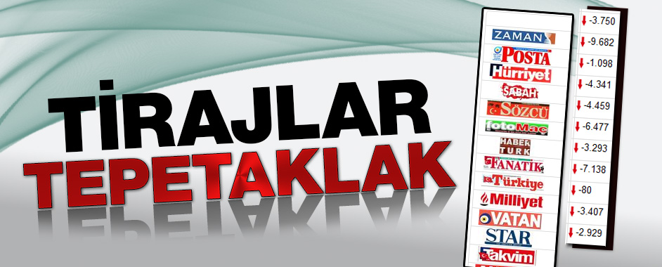Gazete tirajlarında geçtiğimiz haftanın tablosu belli oldu. Nerdeyse bütün gazetelerin tiraj kaybı yaşadığı haftanın toplam kaybı 66 bin okur oldu. Birkaç gazetenin sembolik denebilecek kadar sınırlı tiraj artışı dışında bütün gazetelerin tepetaklak olduğu haftanın en büyük kaybedeni ise Posta gazetesi oldu.