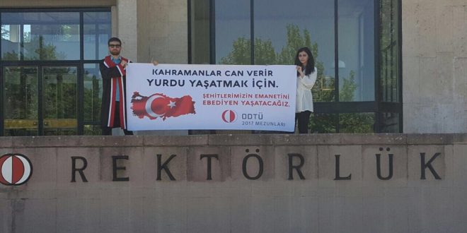 Bilim, kültür ve sanat yerine yapılan terör propagandalarıyla sık sık gündeme gelen ODTÜ’nün mezuniyet töreninde farklı görüntüler ortaya çıktı.