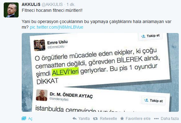‘O örgütle mücadele eden ekipler, ki çoğu CEMAATTEN değildi, görevden BİLEREK alındı, şimdi ALEVİ’leri geriyorlar. Bu pis 1 oyundur DİKKAT’