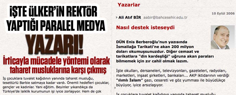 Bu yazdıklarımızdan sonra tuvaletlerdeki taharet musluğunu irtica sembolü gören sayın rektöre tekrar soruyor ve kendisinden cevap bekliyoruz: