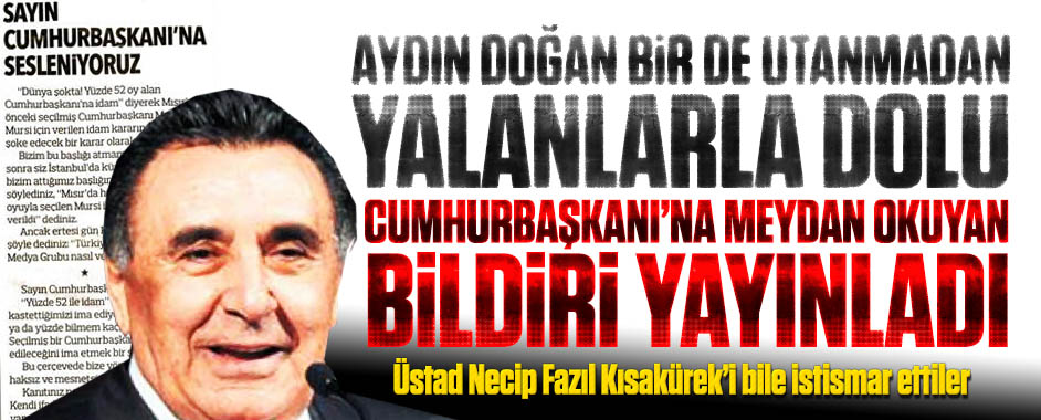 Hürriyet’in bugün yayınlanan mektubunda Necip Fazıl Kısakürek’i bile istismar edip, “Üstad Necip Fazıl’ın dediği gibi bizi ‘Öz yurdumuzda garip, öz vatanımızda parya’ mı yapmak istiyorsunuz?” dediler.
