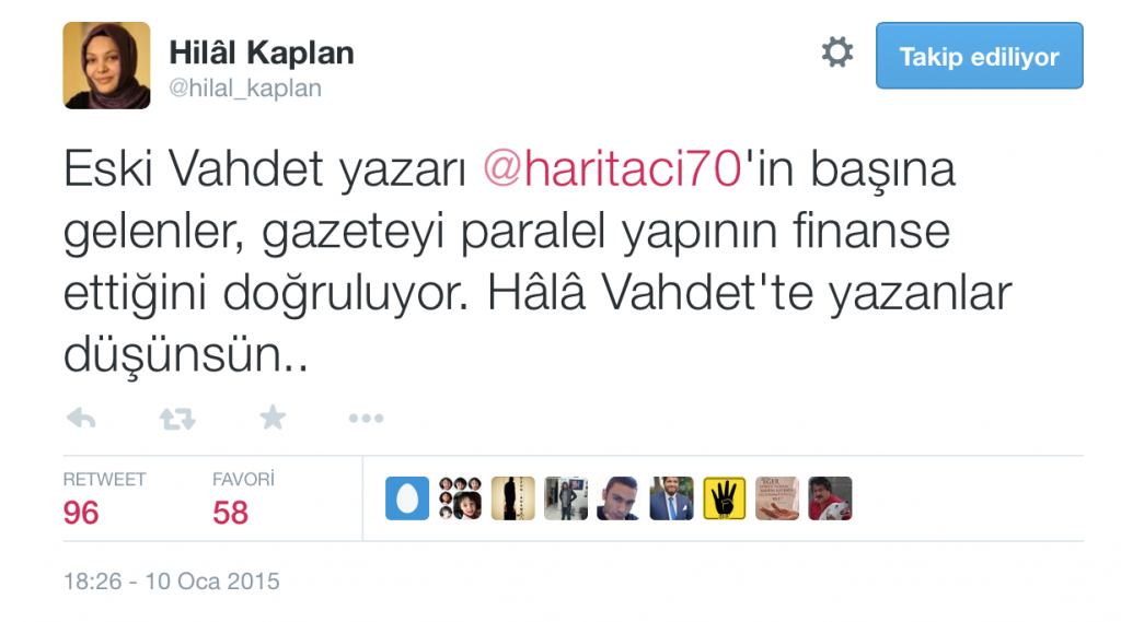 Sadece Yörük değil, Yeni Şafak yazarı Hilal Kaplan da Vahdet’in paralel örgüt gazetesi olduğunu deşifre ettiler.