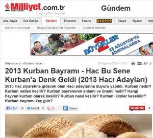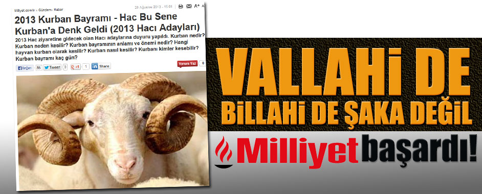 MEDYAGUNDEM.COM- Vallahi de, billahi de şaka değil. Merkez medyanın “din cehaleti”ni tanımlamak için kullanılan “Hac bu sene Kurban’a denk geldi” klişesi bu yıl Milliyet’te patladı!