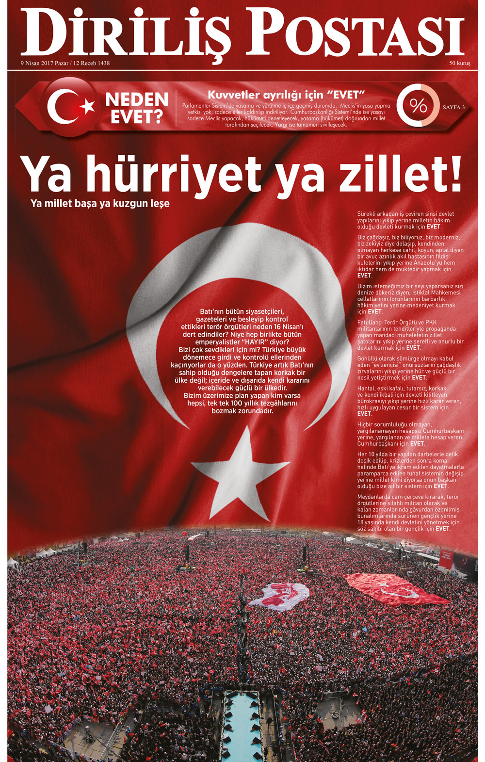 Fetullahçı Terör Örgütü ve PKK militanlarının tehditleriyle propaganda yapan mandacı muhalefetin zillet şatolarını yıkıp yerine şerefli ve onurlu bir devlet kurmak için EVET.