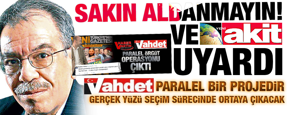 Paralel medya ve Hürriyet’i anladık, peki ya “paralel örgütle ilişkisi olmadığını” iddia edip, yayın hayatında bir kez bile “paralel örgüt” demeyen ve Gülen terör örgütü hakkında hiçbir haber yayınlamayan Vahdet gazetesiyle kardeşi Habervaktim sitesine ne demeli?