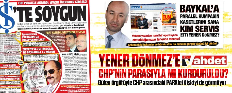 Yener Dönmez’in bir akrabasına mı İş Bankası’nın paraları CHP ve paralel örgüt işbirliğiyle gönderildi de, Vahdet gazetesi ve Habervaktim o haberleri yok sayıyor.