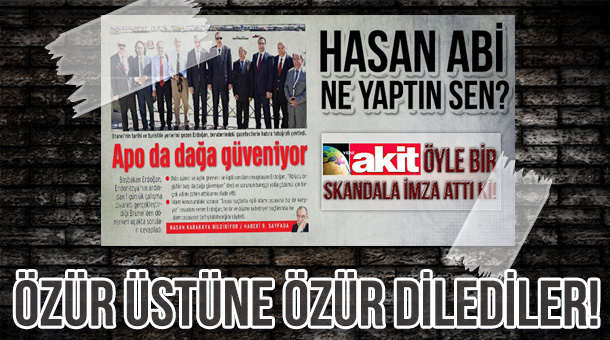 Başbakan Erdoğan’ın “Apo da dağa güvenmiyor” sözünü “Apo da dağa güveniyor” diyerek birinci sayfasına çeken Yeni Akit, bugün yine birinci sayfasından özür diledi.