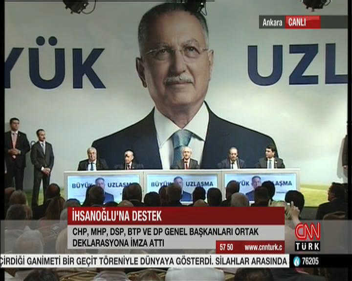 CHP Genel Başkanı Kemal Kılıçdaroğlu ve MHP Genel Başkanı Devlet Bahçeli ile Ekmeleddin İhsanoğlu’nun cumhurbaşkanı adaylığını destekleyen siyasi partilerin genel başkanları bugün ortak olarak hazırlanan deklarasyona imza attı.