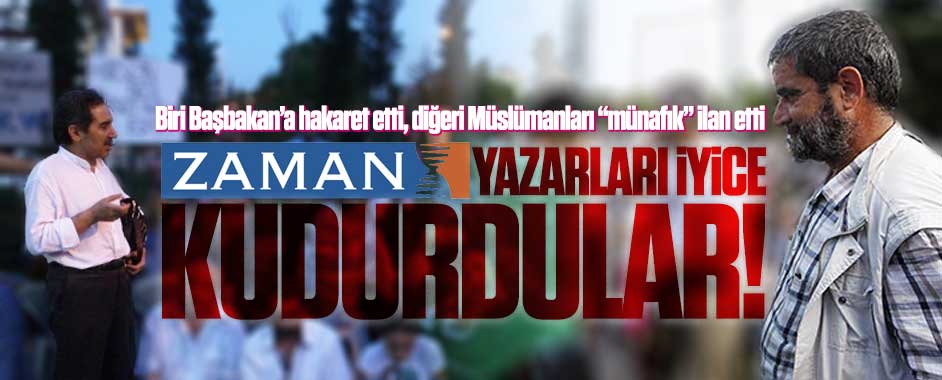 Paralel örgütün medyası “eceline susamış köpek misali cami duvarına işer” gibi, iyice kudurdu. Paralel örgüt medyasında her gün tehdit, küfür, hakaretten sonra şimdi de “tekfir” başladı. Zaman gazetesi yazarı Ali Ünal, Ak Partililer için “münafık” dedi, Mümtazer Türköne “eşkiya” diyerek Başbakan Erdoğan’a hakaret etti.