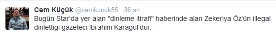 Yeni Şafak yazarı Cem Küçük Twitter’da bu detayı şöyle açıkladı: