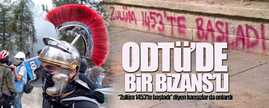 ODTÜ’de Bizans kostümleri giyip terör estirdiler Ajanslar Başbakan Recep Tayyip Erdoğan tarafından açılışı yapılan 1071 Malazgirt Bulvarı’nın OTDÜ arazisinden geçtiği gerekçesiyle üniversite yerleşkesinde toplanan bir grup gösteri yaptı, polisle çatışmaya girdi.